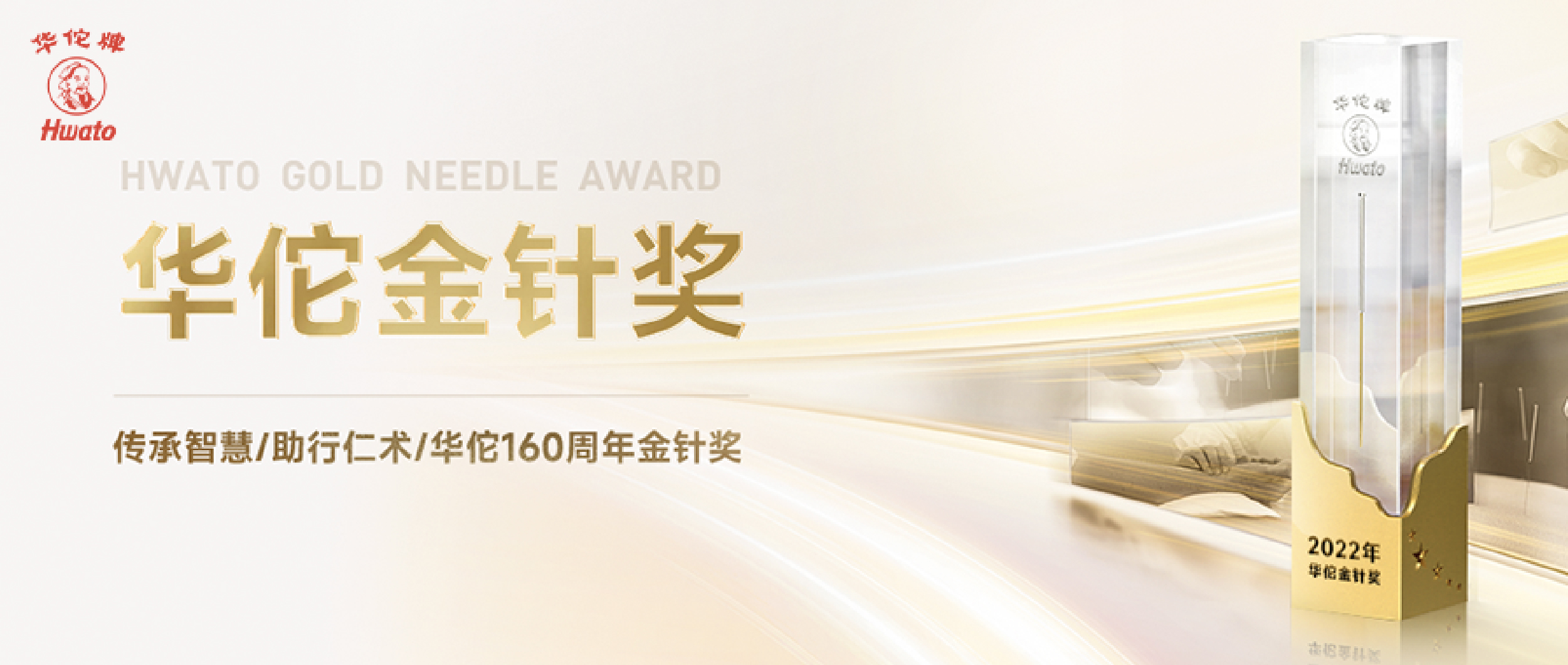 華佗品牌160周年之際,與全國各省、直轄市針灸學會聯合設立“華佗金針獎”,旨在鼓勵為中醫針灸事業作出杰出貢獻的醫務工作者。